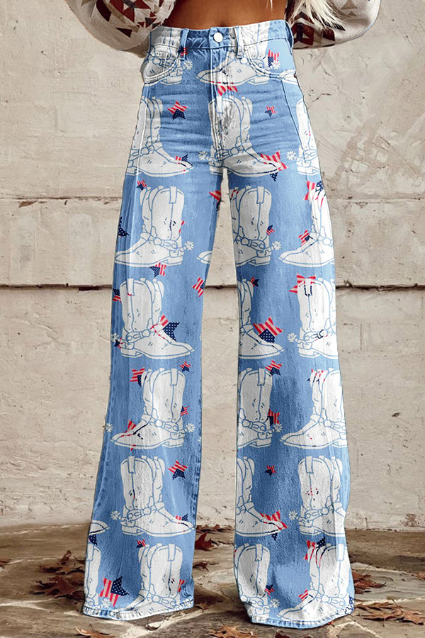 Patriot Day Boots Flag Wide Leg Pants