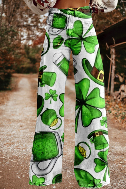 Vintage Trefoil Print Wide-Leg Trousers