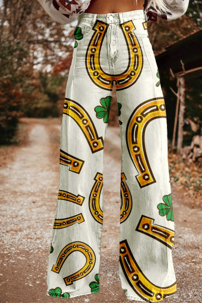 Vintage Western Saddle Trefoil Print Wide Leg Trousers