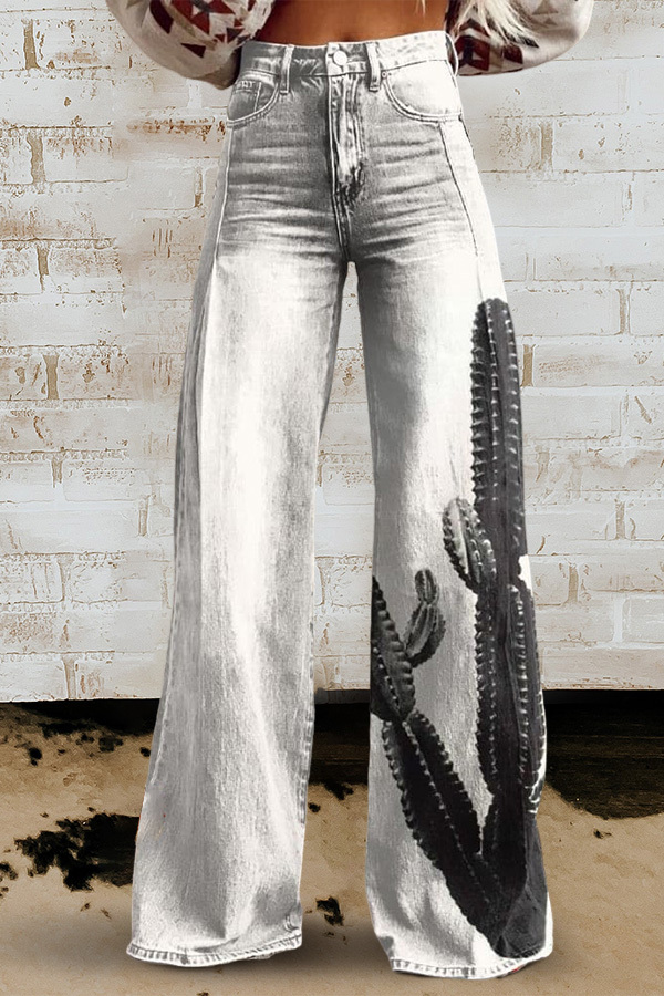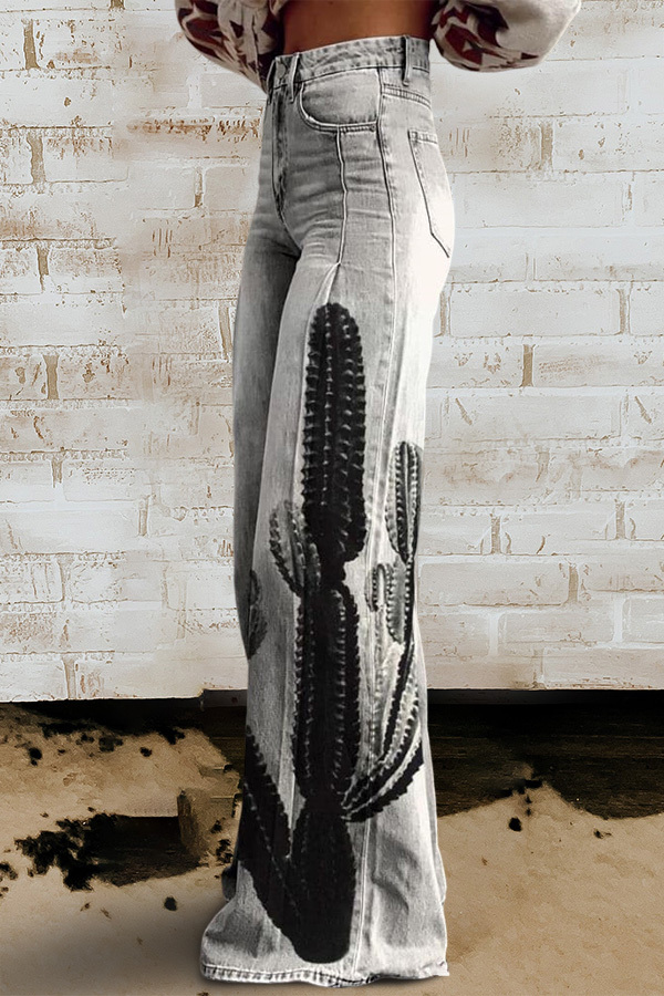 Cactus Print Casual Wide Leg Pants
