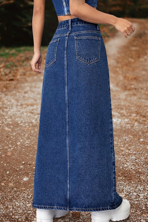 High Slit Denim Skirt