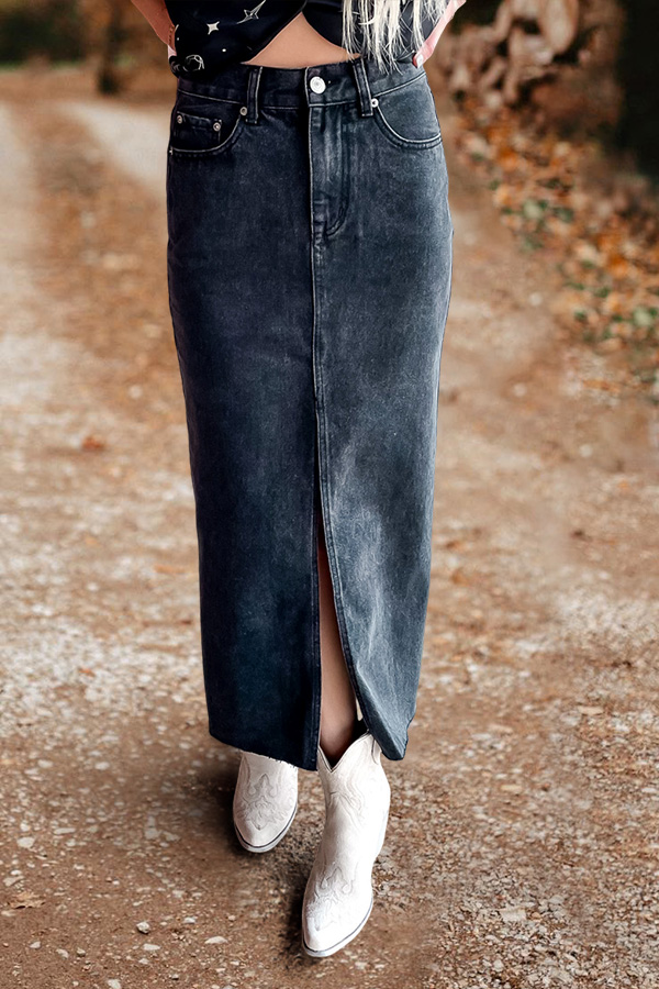 Washed Slit Denim Skirt