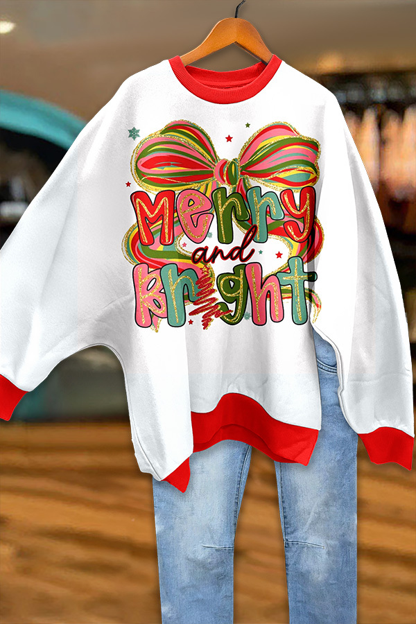 Merry And Bright Bow Batwing Sleeve Sweatshirt