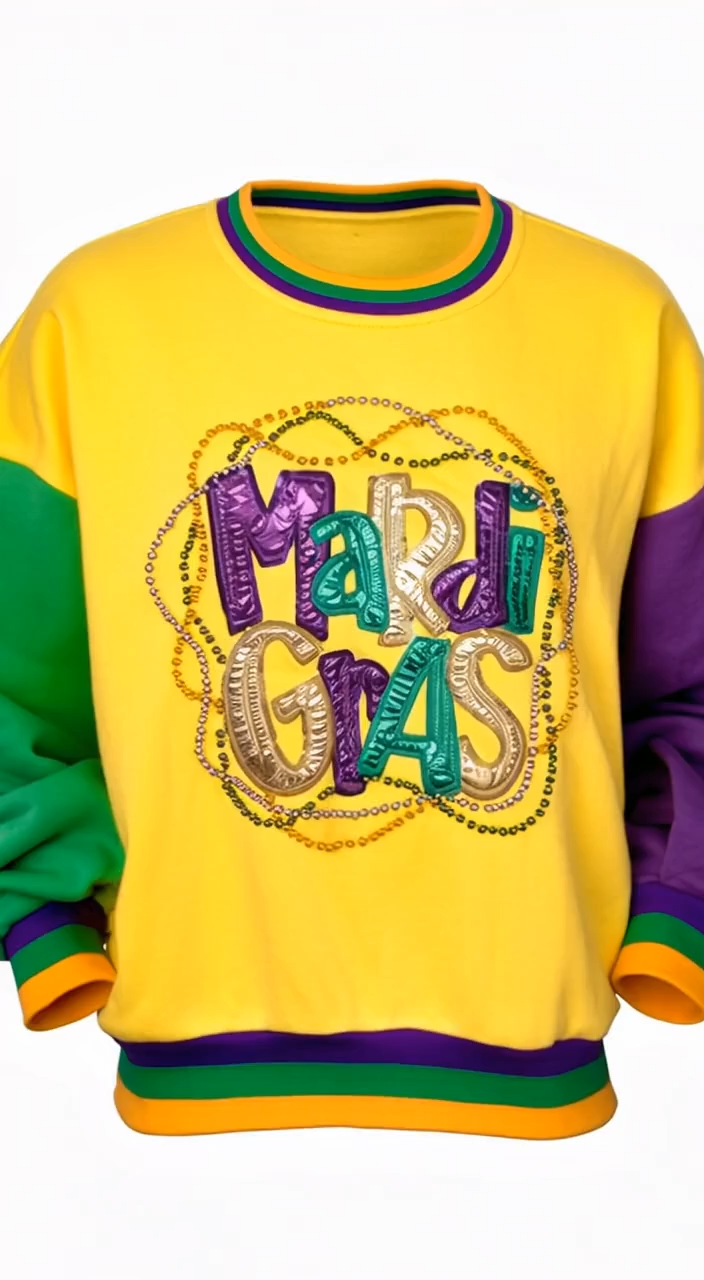 Mardi Gras Bead Color Block Sweatshirt
