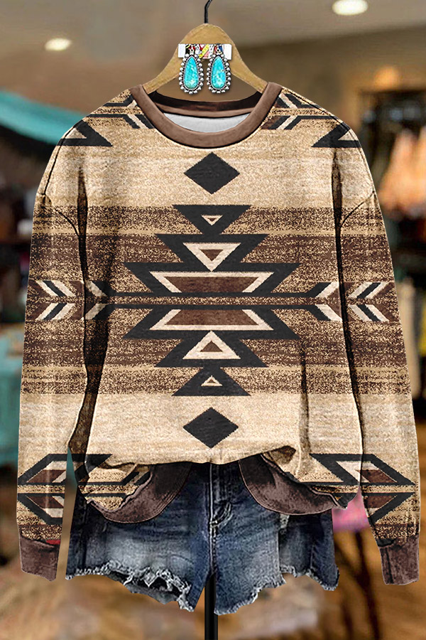 Stay on trend this season in our new casual, round neck sweatshirt. We especially love the graphic print fabric and think this piece will be a new favorite in your closet!