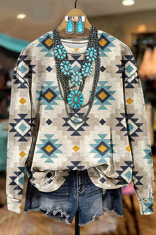 Stay on trend this season in our new casual, round neck sweatshirt. We especially love the graphic print fabric and think this piece will be a new favorite in your closet!