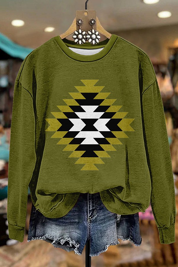 Simple Western Aztec Printed Sweatshirt