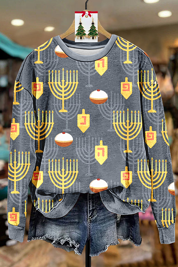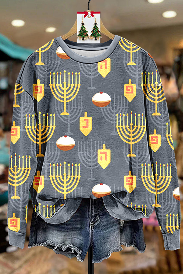 Hanukkah Menorah Print Sweatshirt
