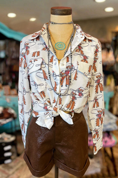 Western Rodeo Cowgirl Print Shirt
