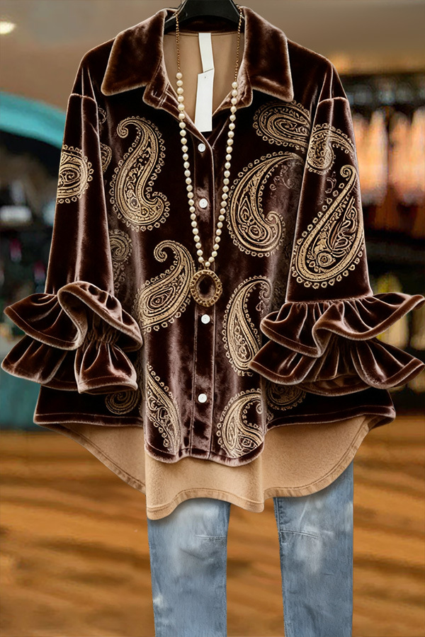 Velvet Paisley Ruffle Top