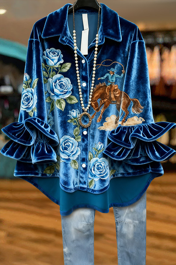 Velvet Cowboy Rose Ruffle Top