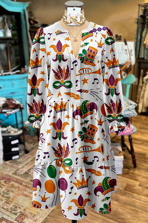Mardi Gras Mask Iris Ruffle Dress