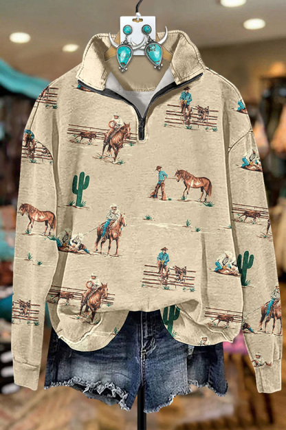 Western Ranch Cactus Zip Sweatshirt