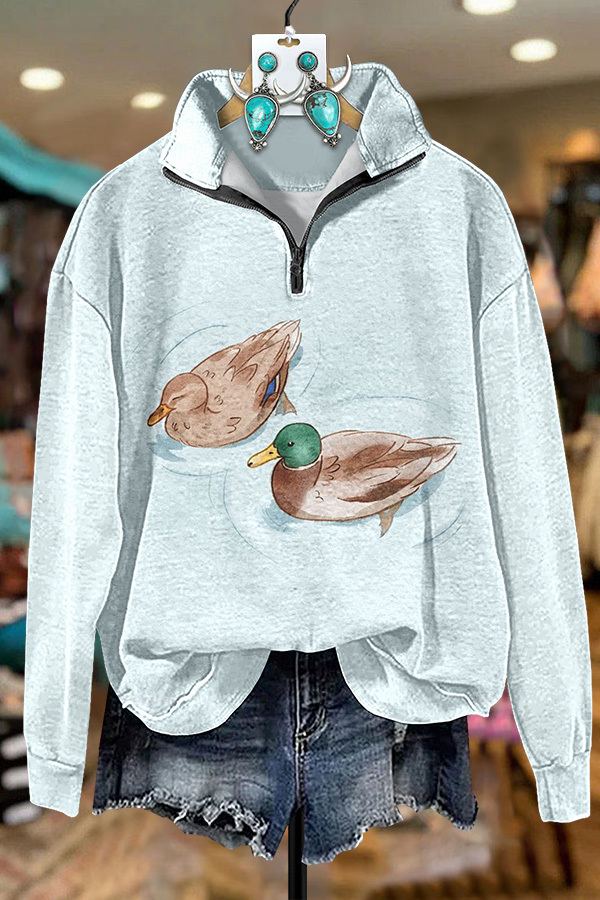 Duck Print Zipper Sweatshirt