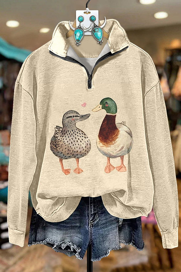 Cute Duck Print Zipper Sweatshirt