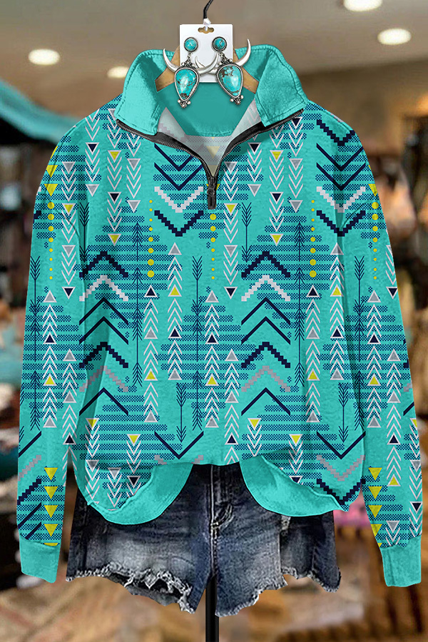 Turquoise Striped Arrow Zip Sweatshirt