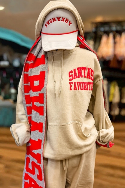 Stay on trend this season in our new casual, hood Hoodie. We especially love the holiday fabric and think this piece will be a new favorite in your closet!