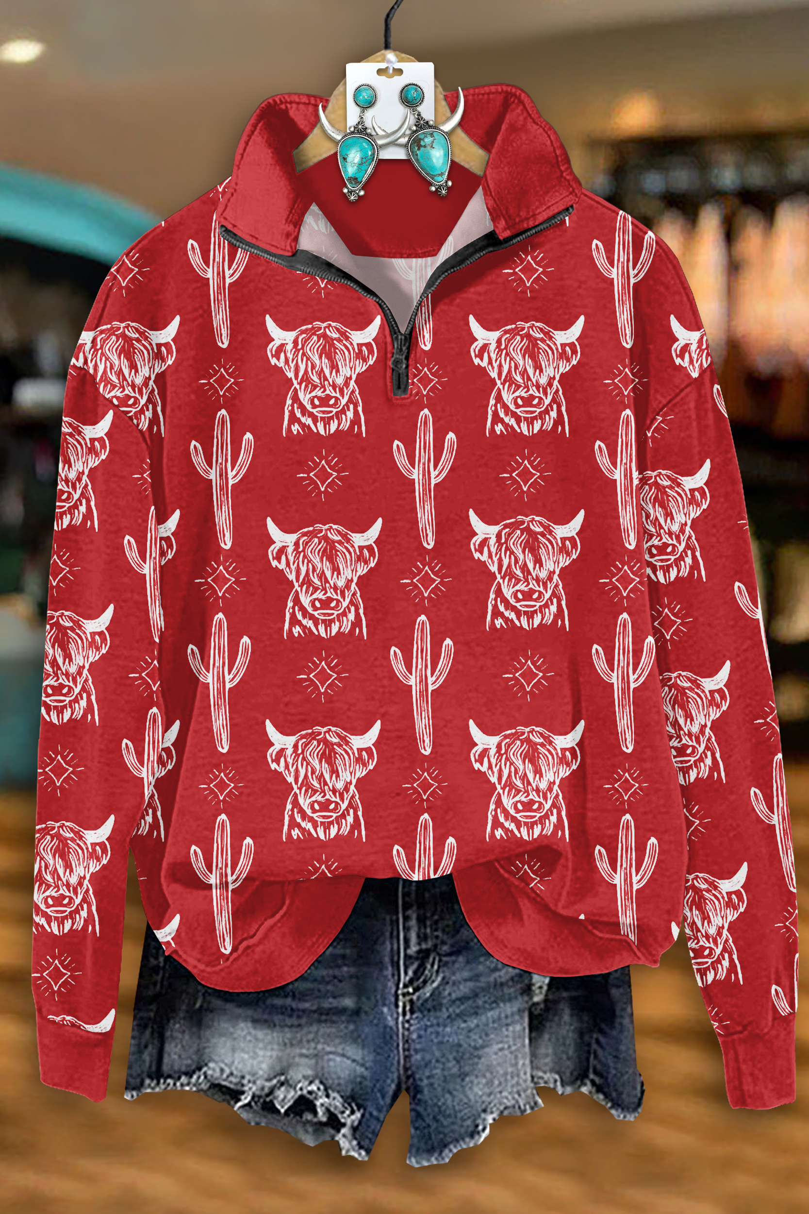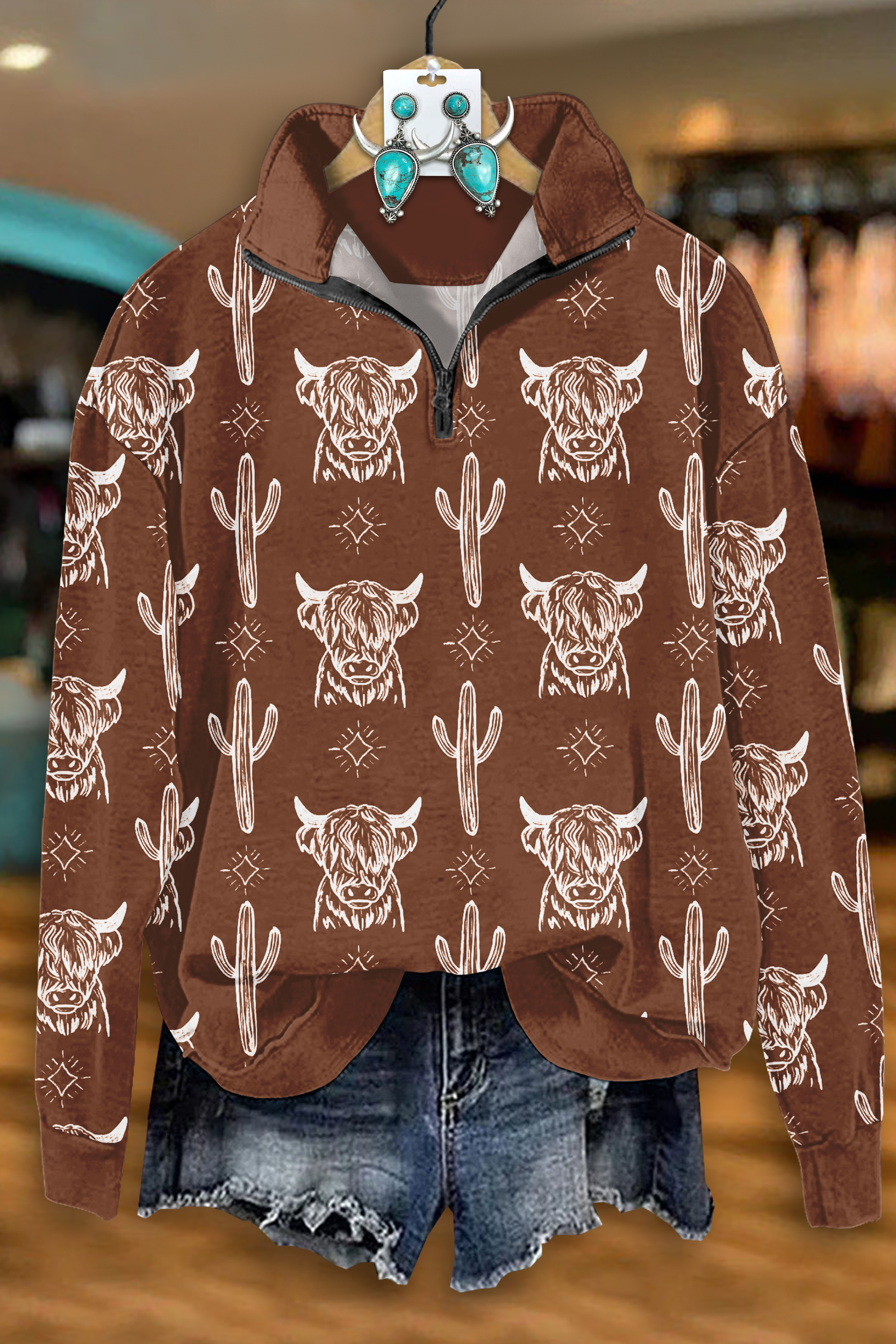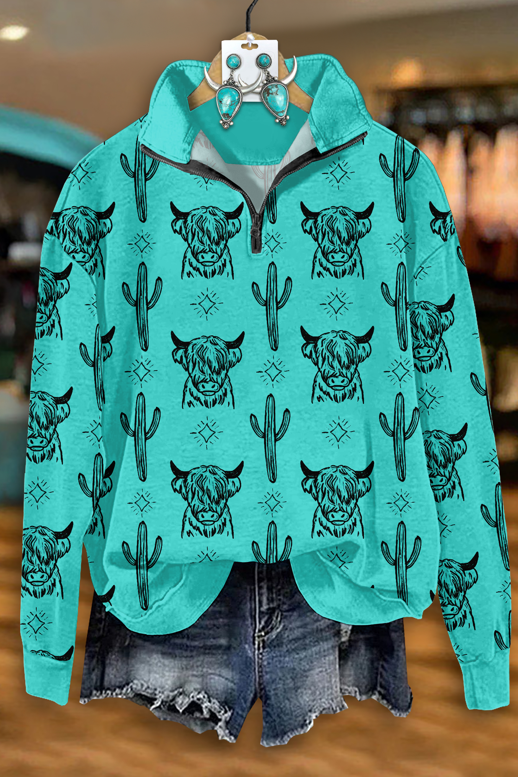 Stay on trend this season in our new casual, mandarin collar top. We especially love the tribal print fabric and think this piece will be a new favorite in your closet!