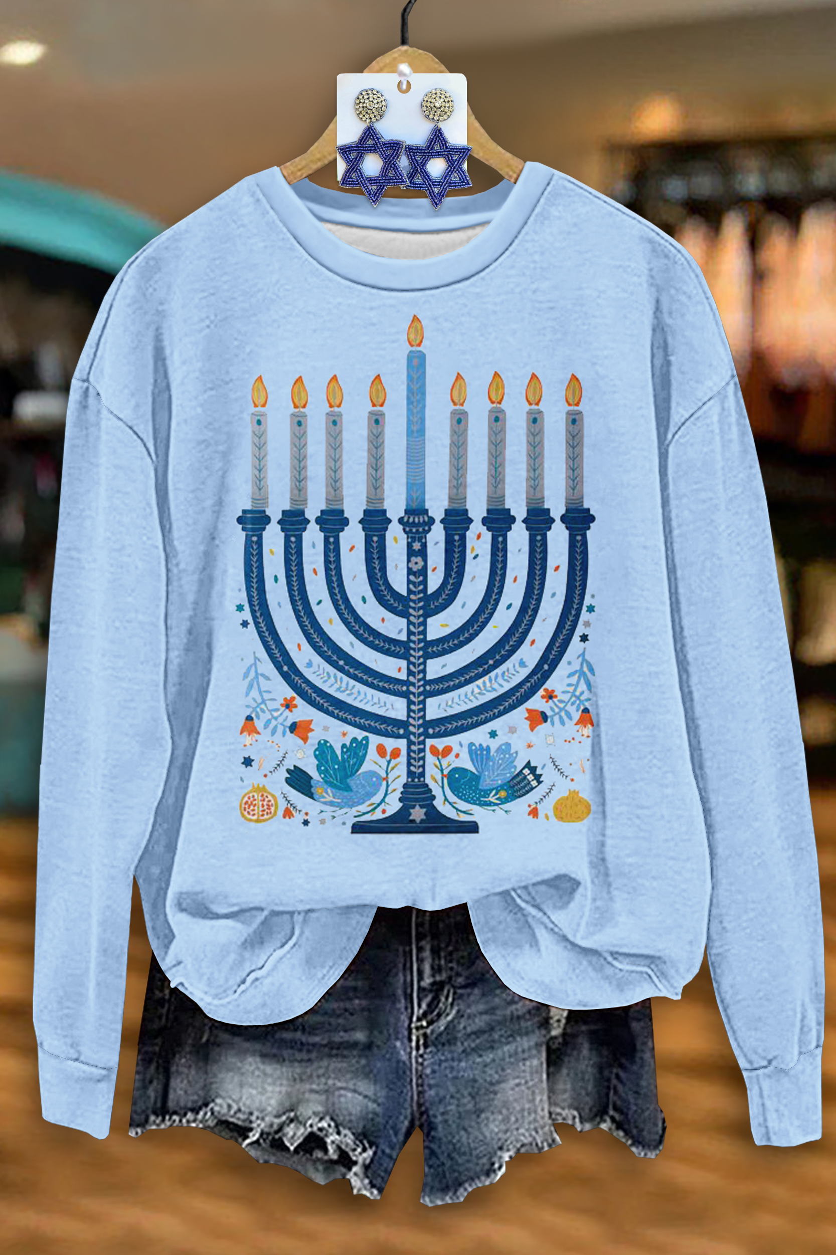 Simple Hanukkah Print Long Sleeve Sweatshirt