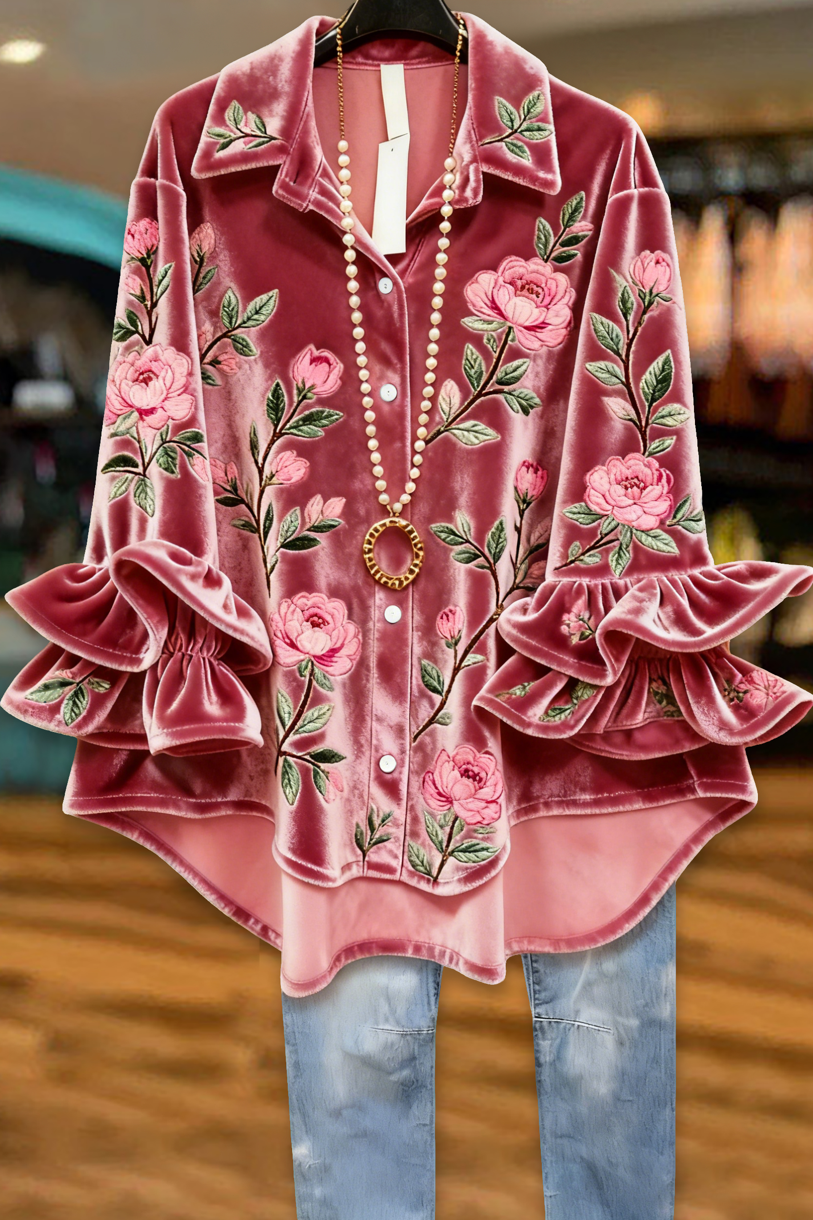 Stay on trend this season in our new classic, shirt collar blouse. We especially love the graphic print fabric and think this piece will be a new favorite in your closet!
