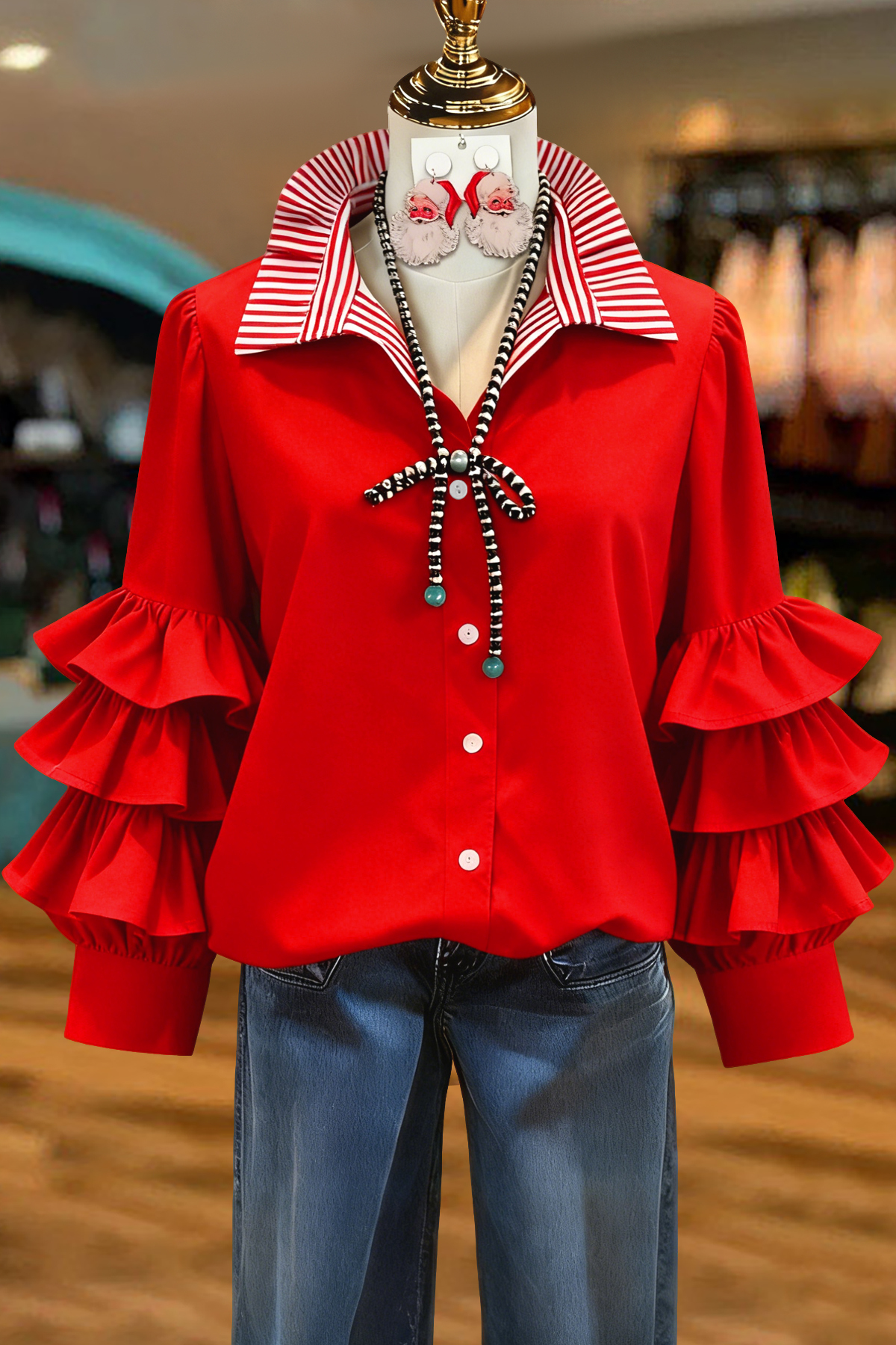 - Neckline: shirt collar