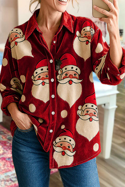 Stay on trend this season in our new classic,stylish, shirt collar top. We especially love the christmas fabric and think this piece will be a new favorite in your closet!