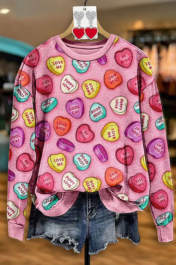 Vintage Valentine's Day Heart Print Sweatshirt