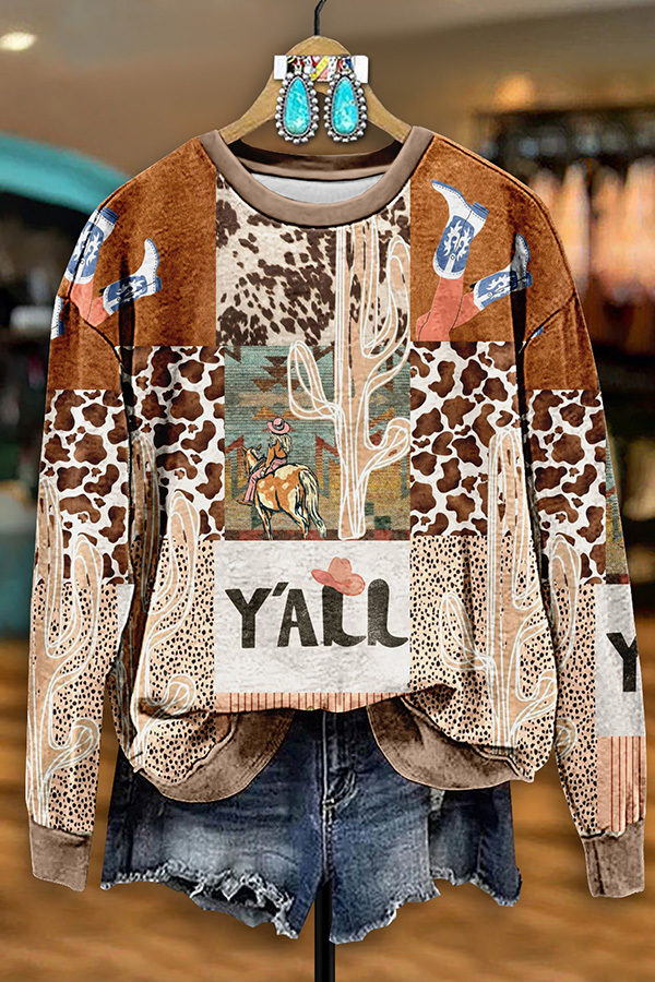Retro Western Cactus Print Sweatshirt