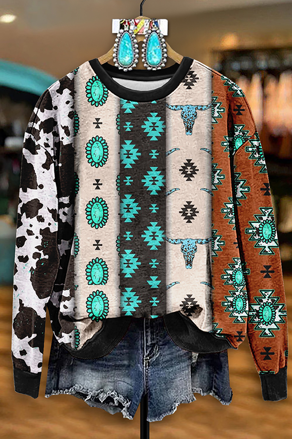 Retro Western Aztec Turquoise Print Sweatshirt