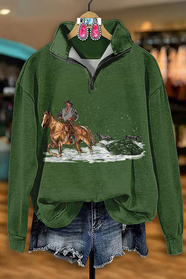 Vintage Western Rodeo Print Zip-Up Sweatshirt