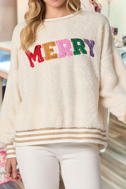 Soft Rhinestone Embroidered Lettering Brushed Sweatshirt