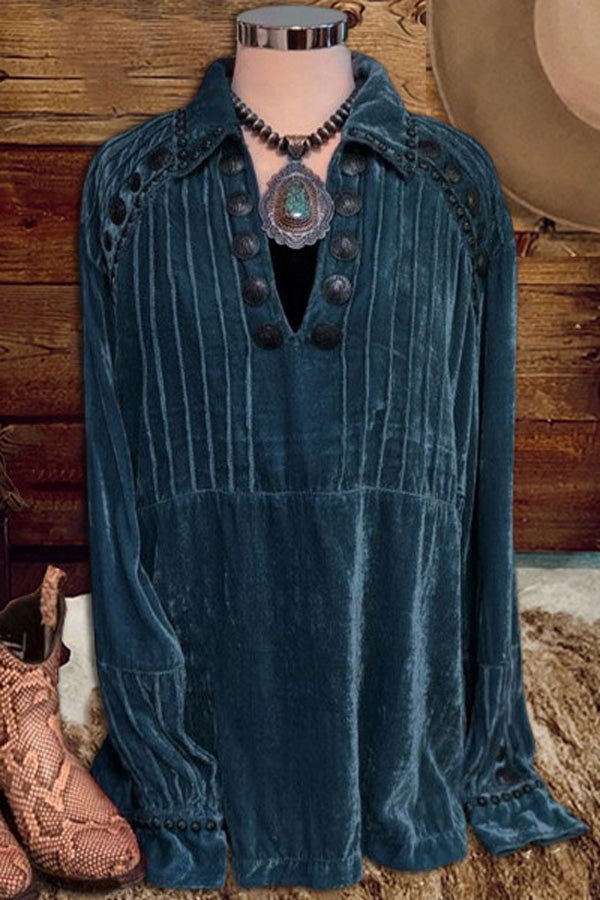 We're glad you've clicked on our new western blouse as we're really into its stylish vibes! The v neck and long sleeve cut make this a great choice for any stylish girl.