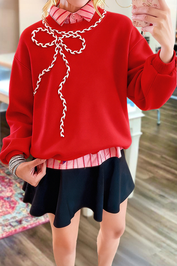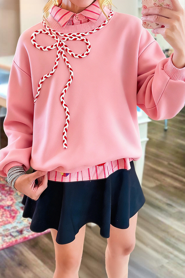 Sweet Bow-Tie Crew Neck Sweatshirt