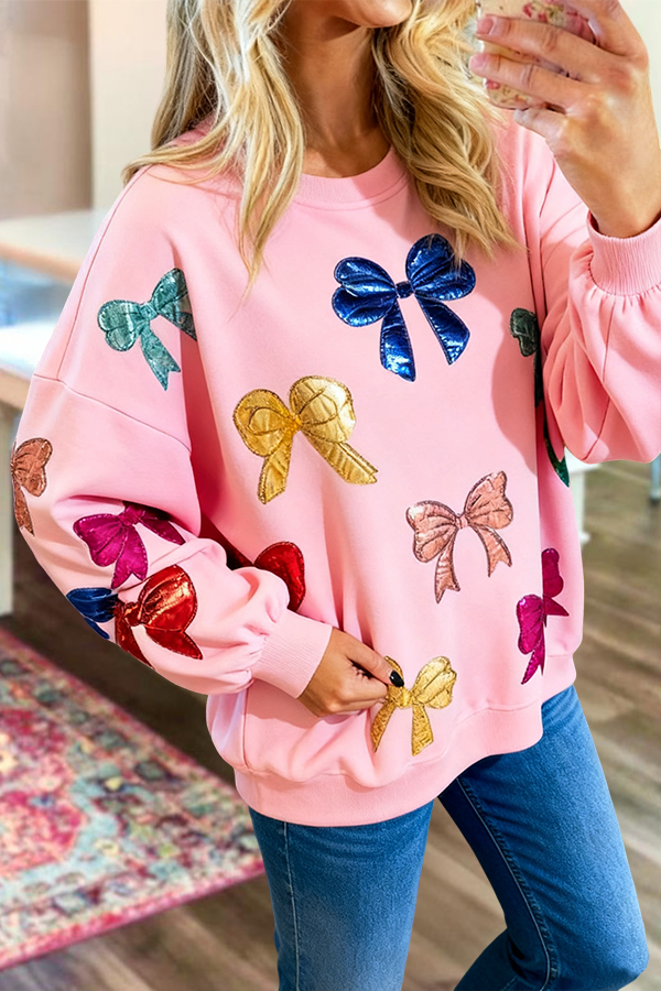Sweet Colorful Bow Crew Neck Sweatshirt