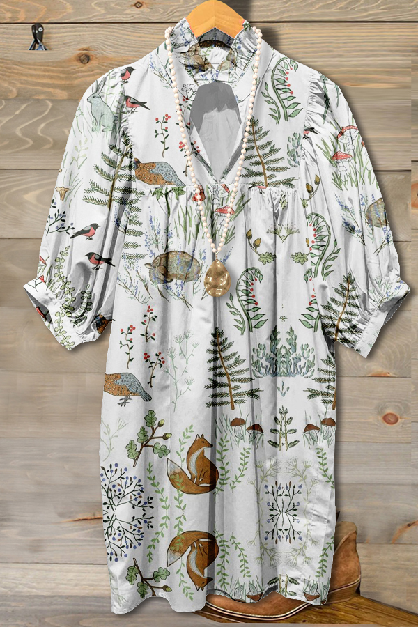 Elegant Contrast Graphic Print Midi Dress