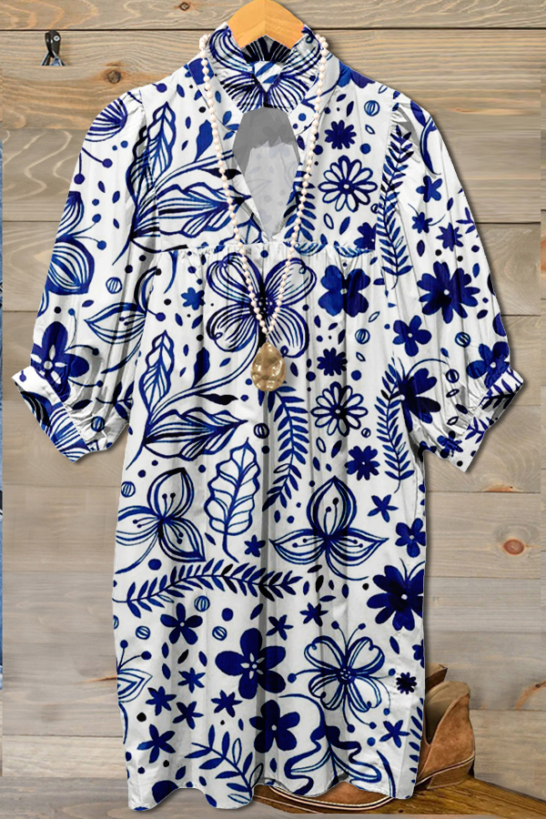 Elegant Contrast Graphic Print Midi Dress