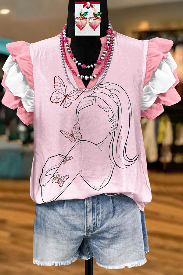 Pink Flying Sleeve Music Blouse