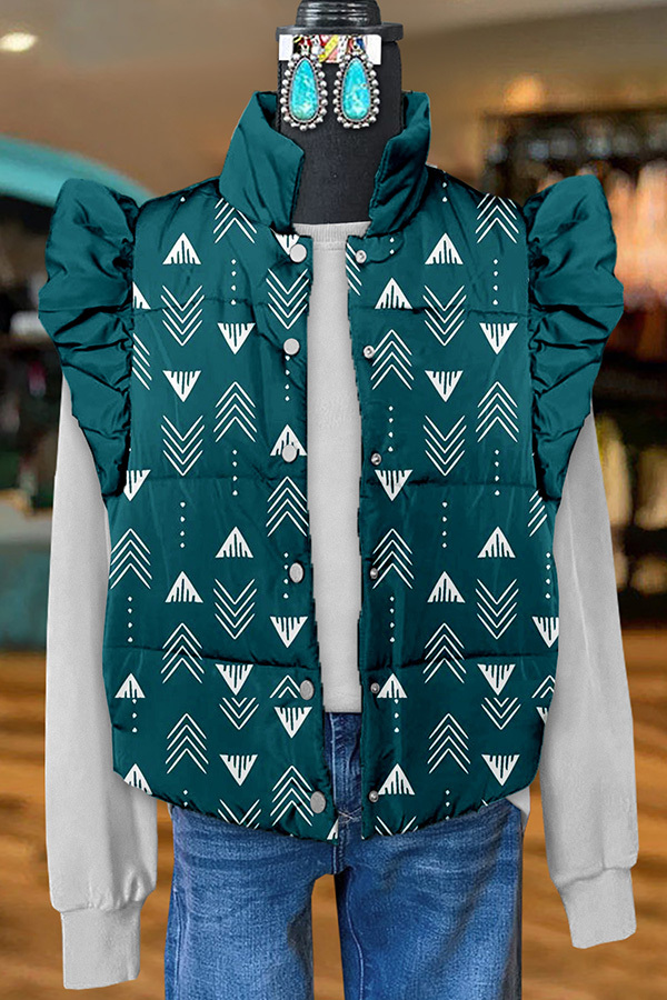 Vintage Western Aztec Arrow Print Ruffle Sleeve Vest