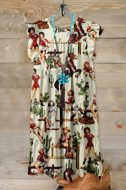 Vintage Western Rodeo Print Dress