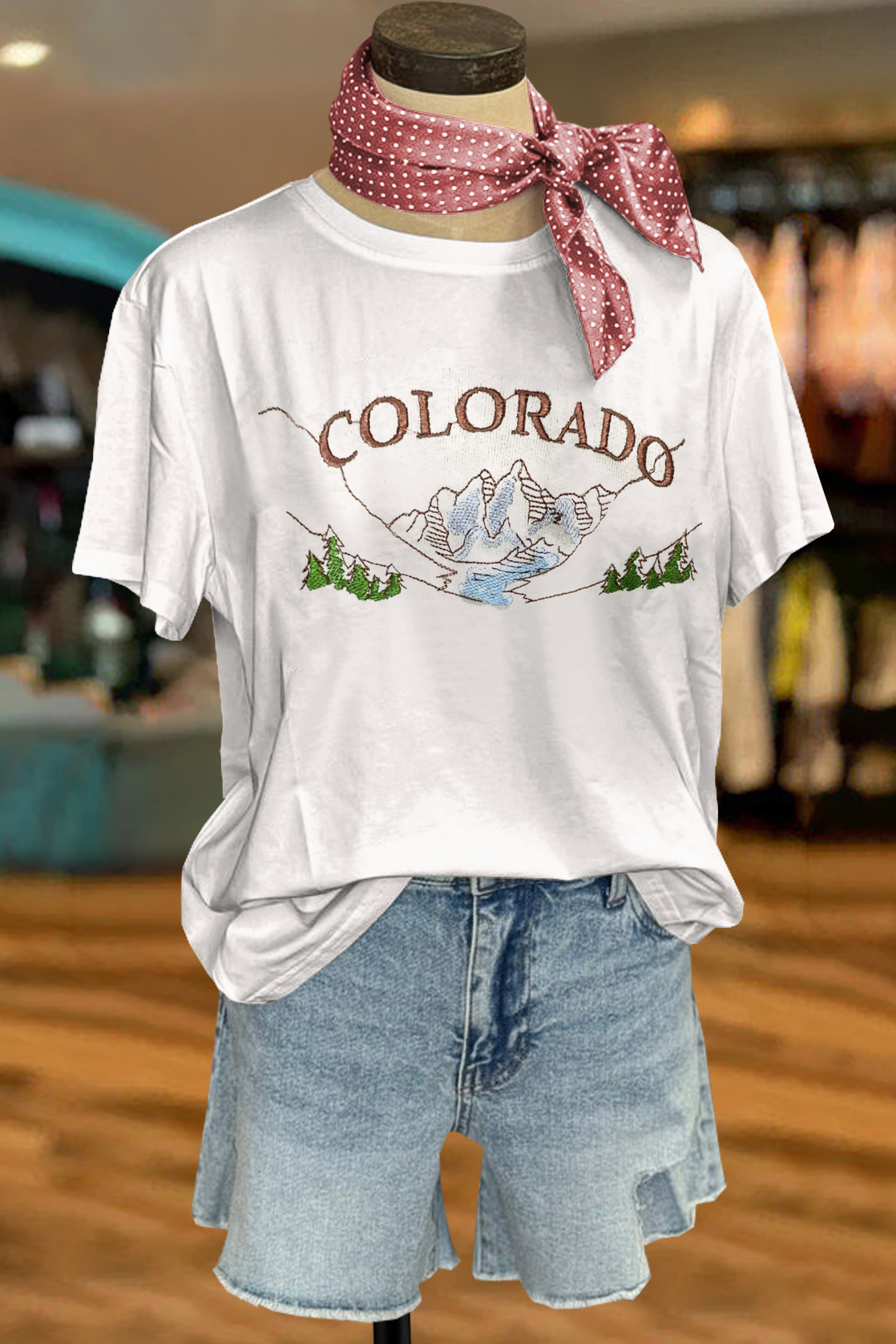 Stay on trend this season in our new casual, round neck t-shirt. We especially love the graphic print fabric and think this piece will be a new favorite in your closet!