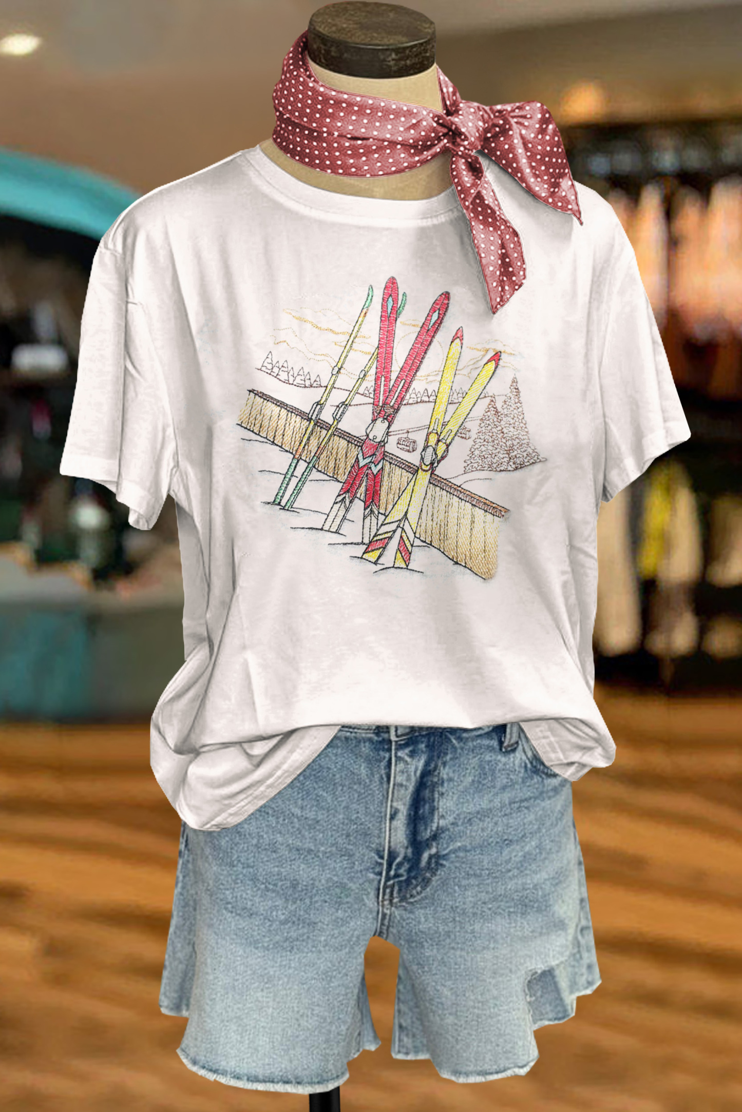 Stay on trend this season in our new casual, round neck t-shirt. We especially love the graphic print fabric and think this piece will be a new favorite in your closet!