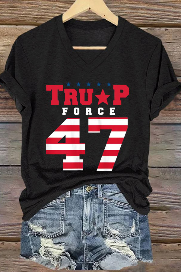 Women's Stars And Stripes 47 Print V-Neck T-Shirt