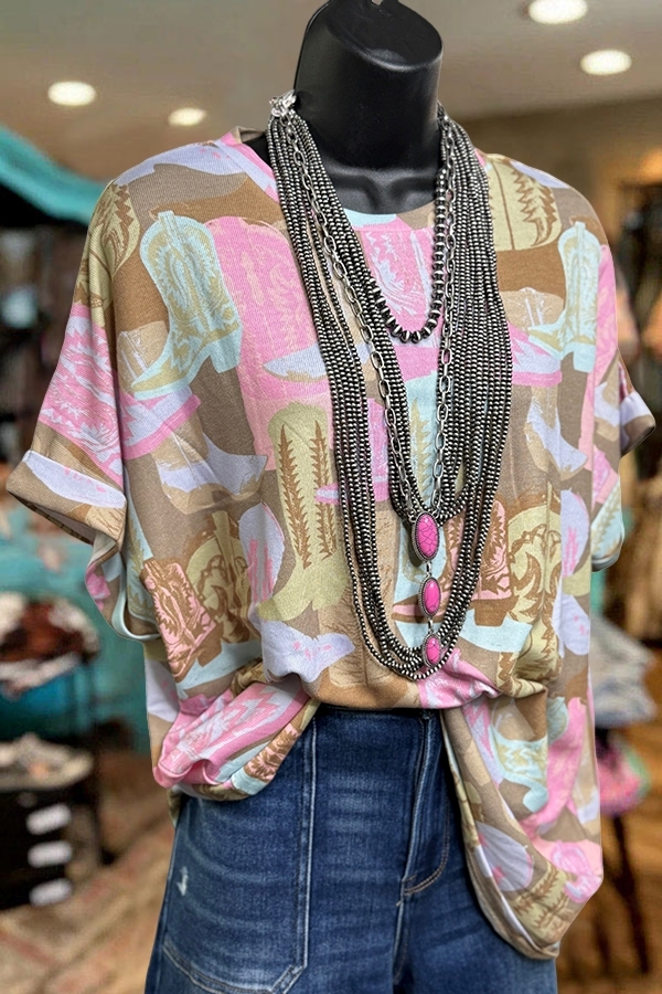 Cute Western Boots Print T-Shirt