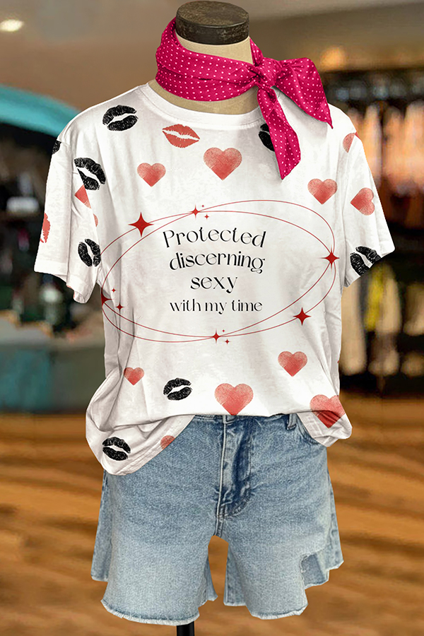Stay on trend this season in our new casual, round neck t-shirt. We especially love the graphic print fabric and think this piece will be a new favorite in your closet!