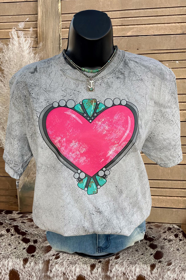 Turquoise Heart Print T-Shirt