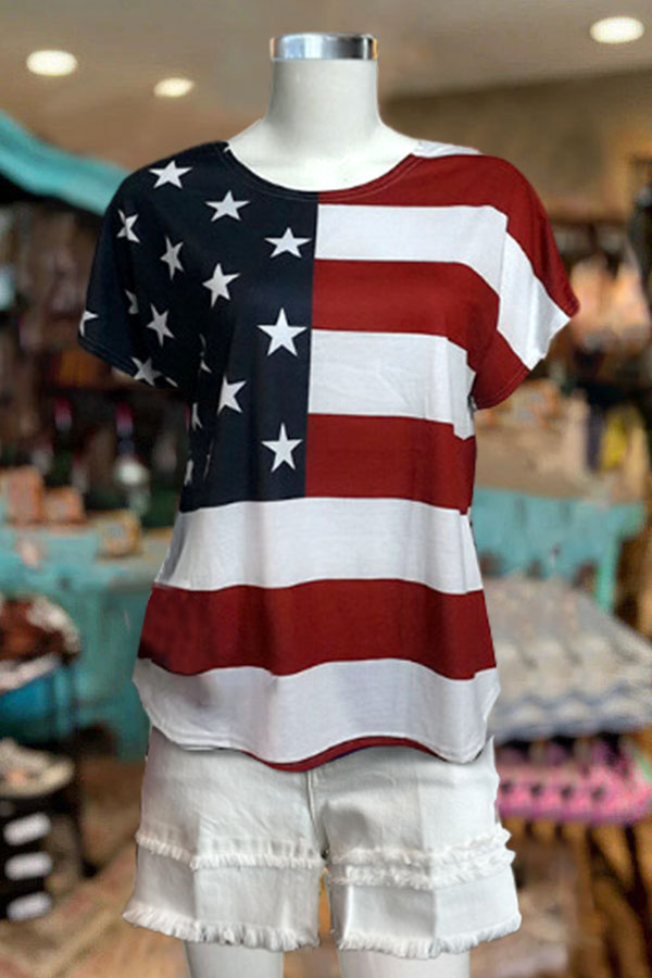 Stay on trend this season in our new classic, round neck t-shirt. We especially love the national flag fabric and think this piece will be a new favorite in your closet!