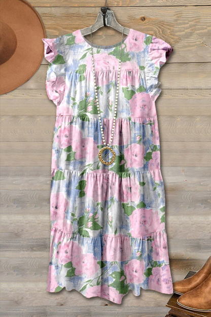 Monet Floral Print Ruffle Mini Dress