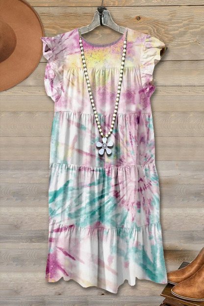Taro Tie-Dye Ruffled Mini Dress