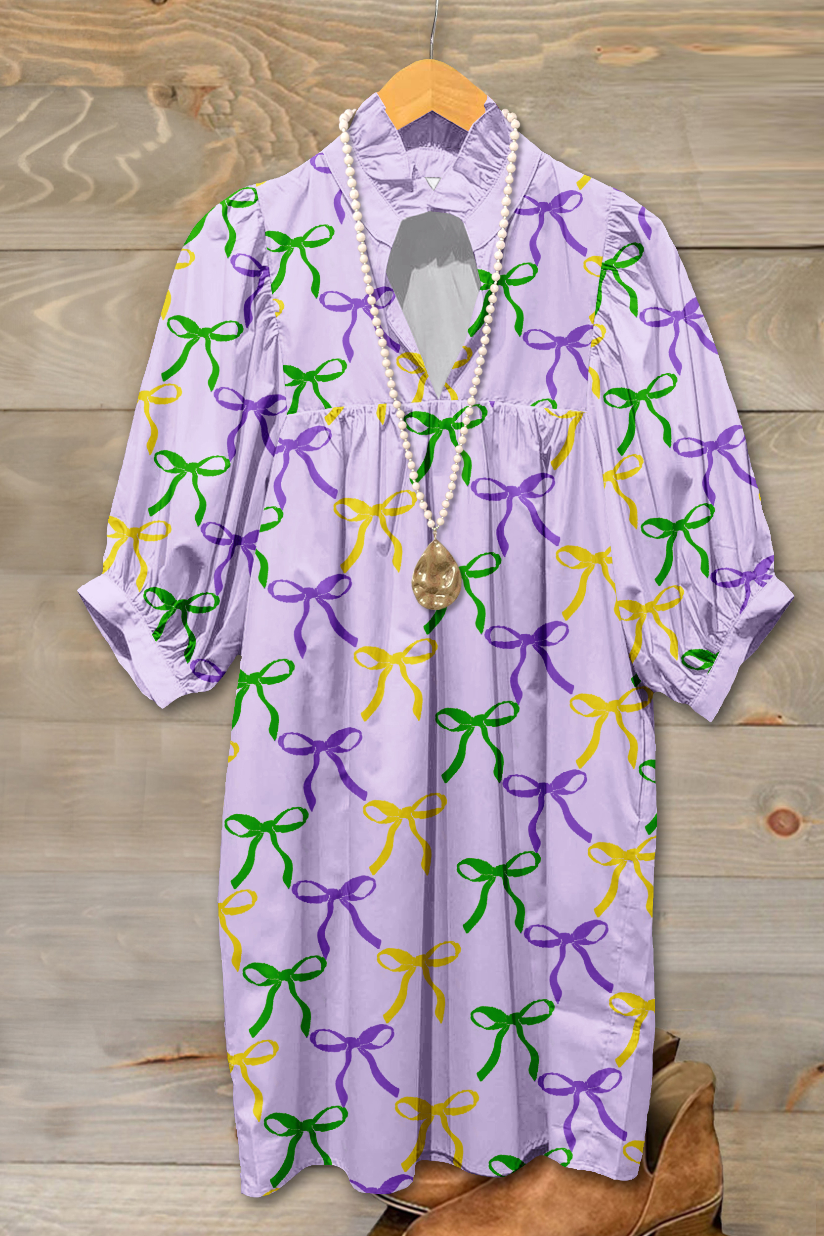 Mardi Gras Bow Print Pleated Dress