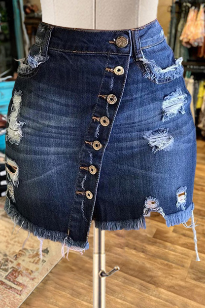 Sexy Ripped Button Hip-hugging Denim Skirt
